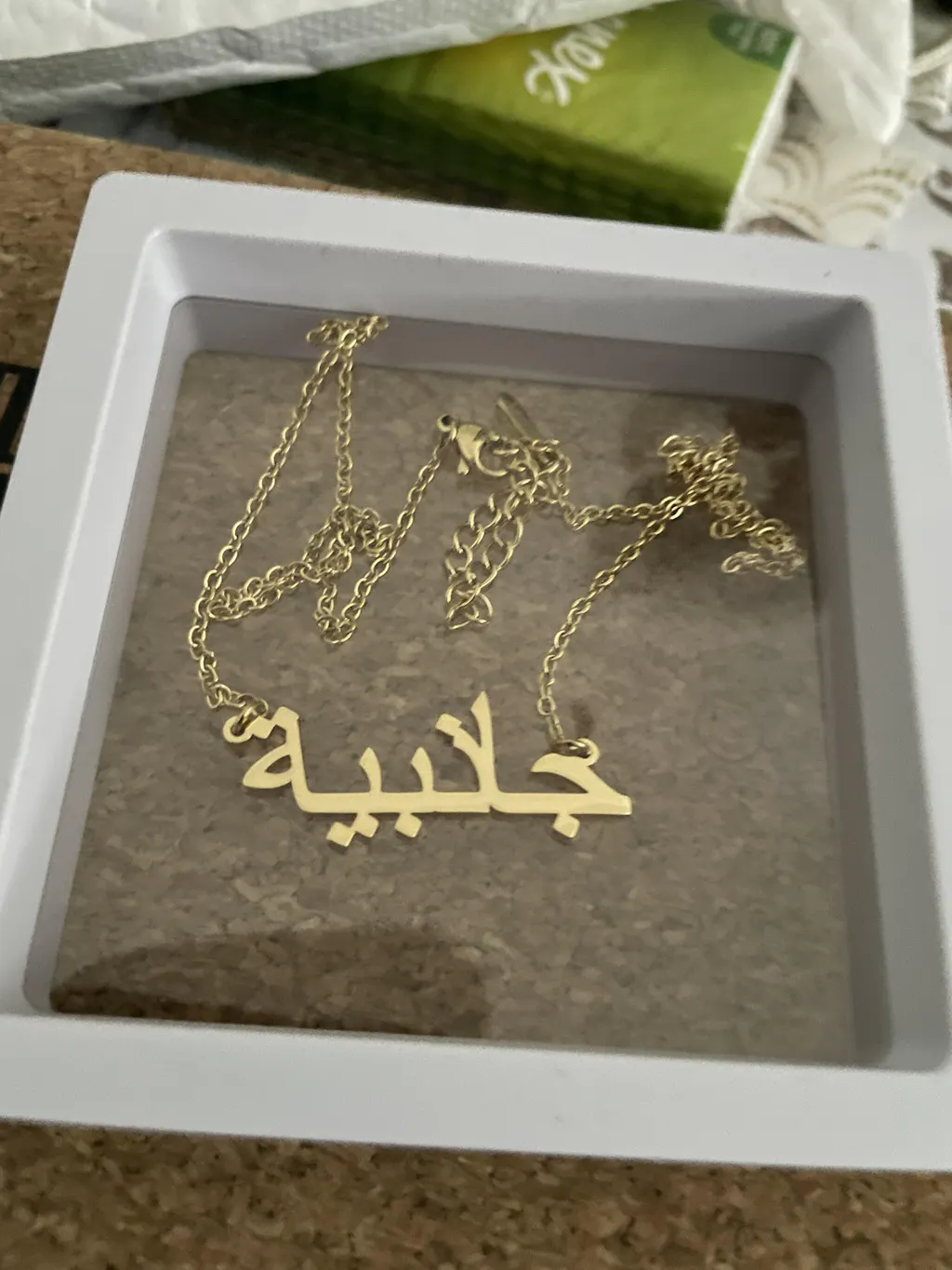 This elegant personalized Arabic name necklace is crafted from durable stainless steel, making it a perfect accessory for any occasion. Ideal for gifting or personal use, it adds a touch of individuality to your jewelry collection.
